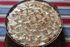 3 - Pour la meringue, monter les blancs en neige avec une pincée de sel. Quand ils commencent à être fermes ajouter le sucre et la levure. Fouetter jusquà ce que les blancs soient ferme. Recouvrer la crème au citron avec les blancs en neige. Cuire 10 mn à four doux - th 4/5- 135° jusqu’à ce que la meringue dore.